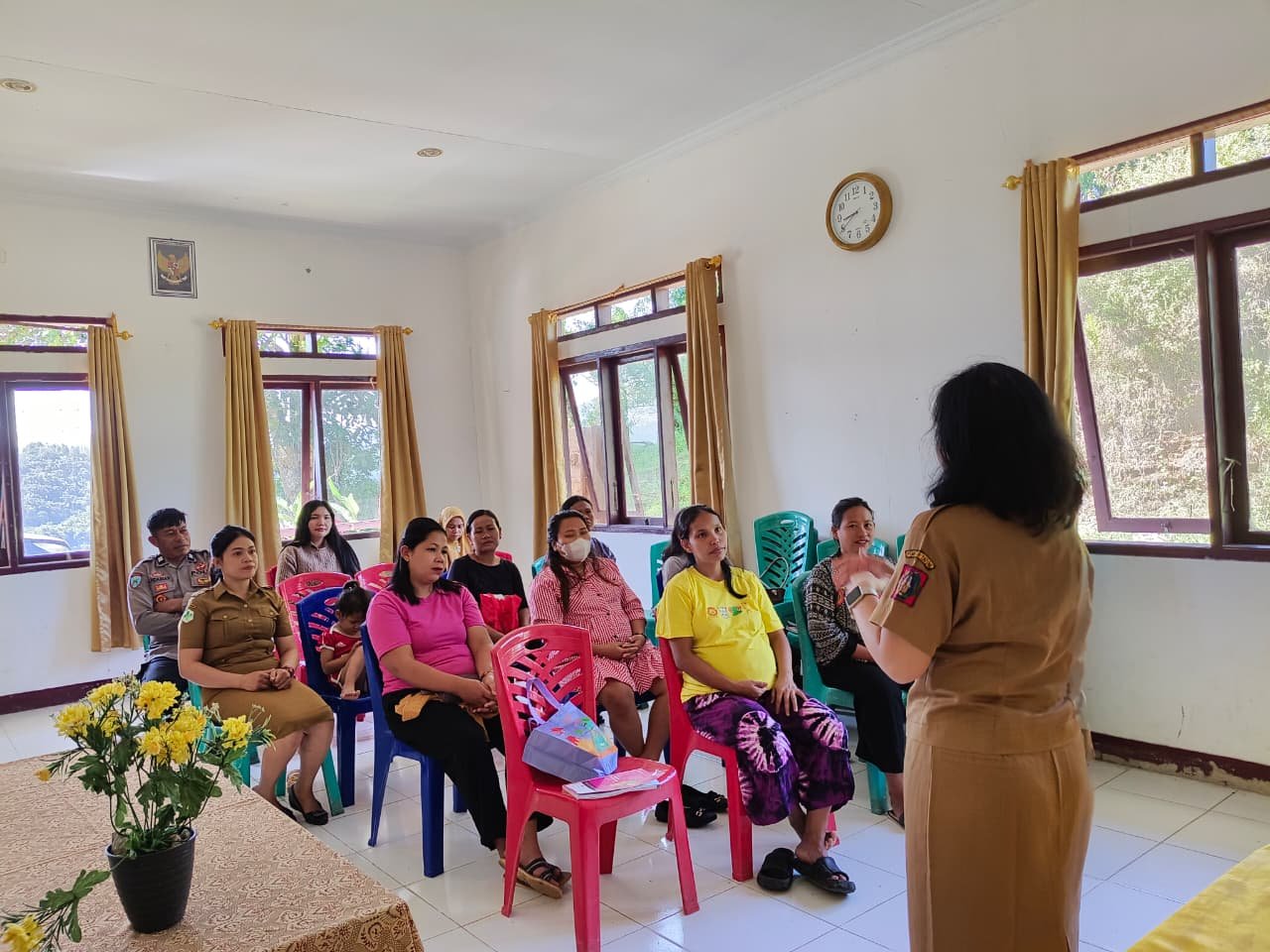 Dalam kesempatan itu, Bhabinkamtibmas juga mengikuti kegiatan sosialisasi bagi ibu-ibu yang diselenggarakan oleh UPT Puskesmas Makale, Kabupaten Tana Toraja.